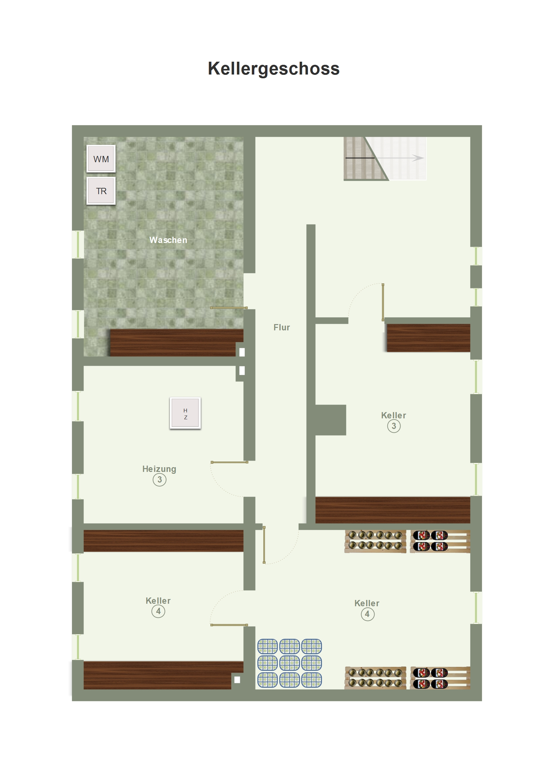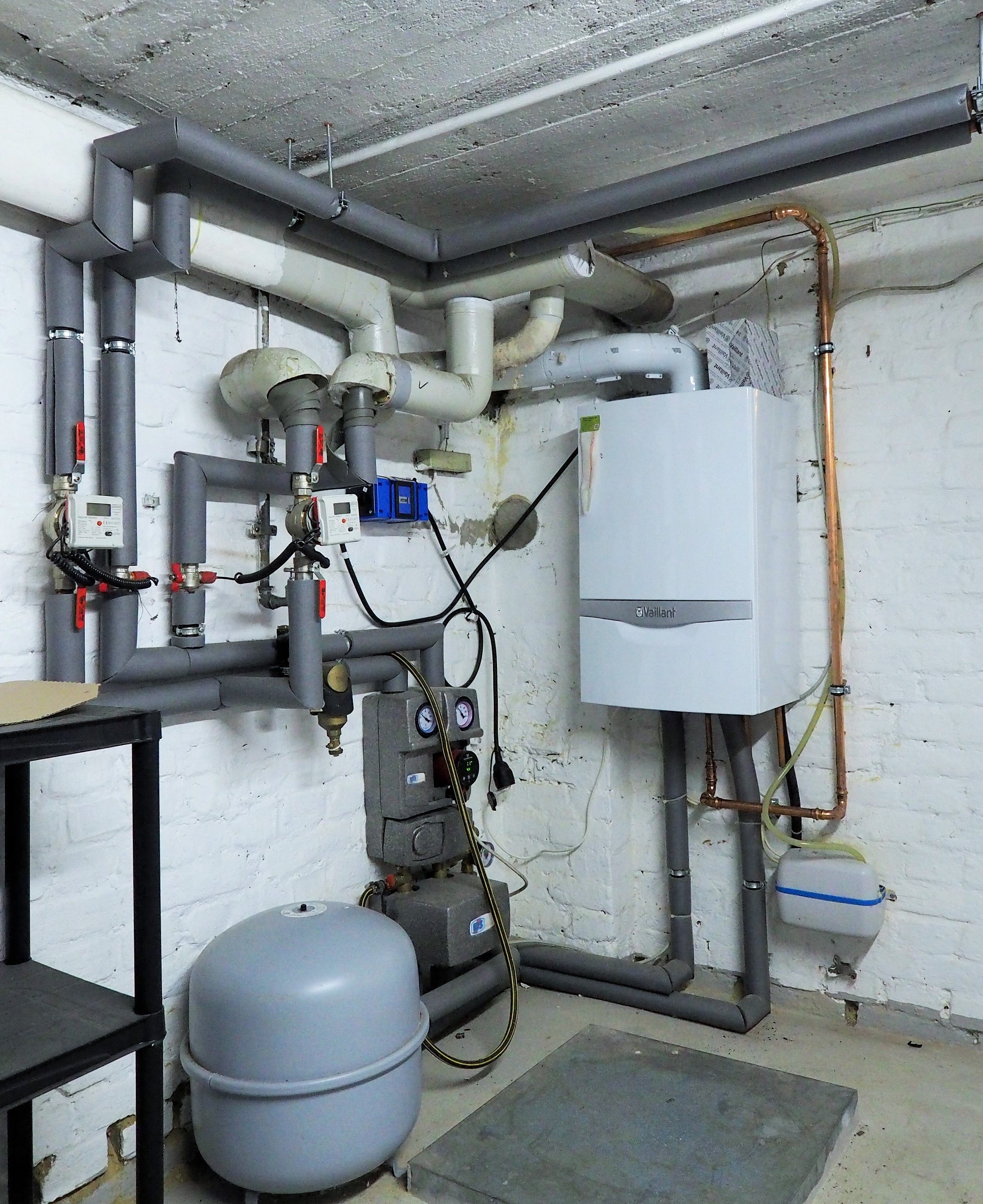Im Untergeschoss des Hauses finden Sie zugehörig der Wohnung zwei große Kellerräume. Die 2014 neu installierte Gas-Brennwertheizung des Markenherstellers Vaillant versorgt ausschließlich die beiden Wohnungen des Hauses mit Heizungswärme, die Warmwasserversorgung erfolgt dezentral über elektrische Durchlauferhitzer. Neben den beiden Vorratsräumen steht zusätzlich noch ein gemeinschaftlicher Wasch- und Trockenraum zur Verfügung.