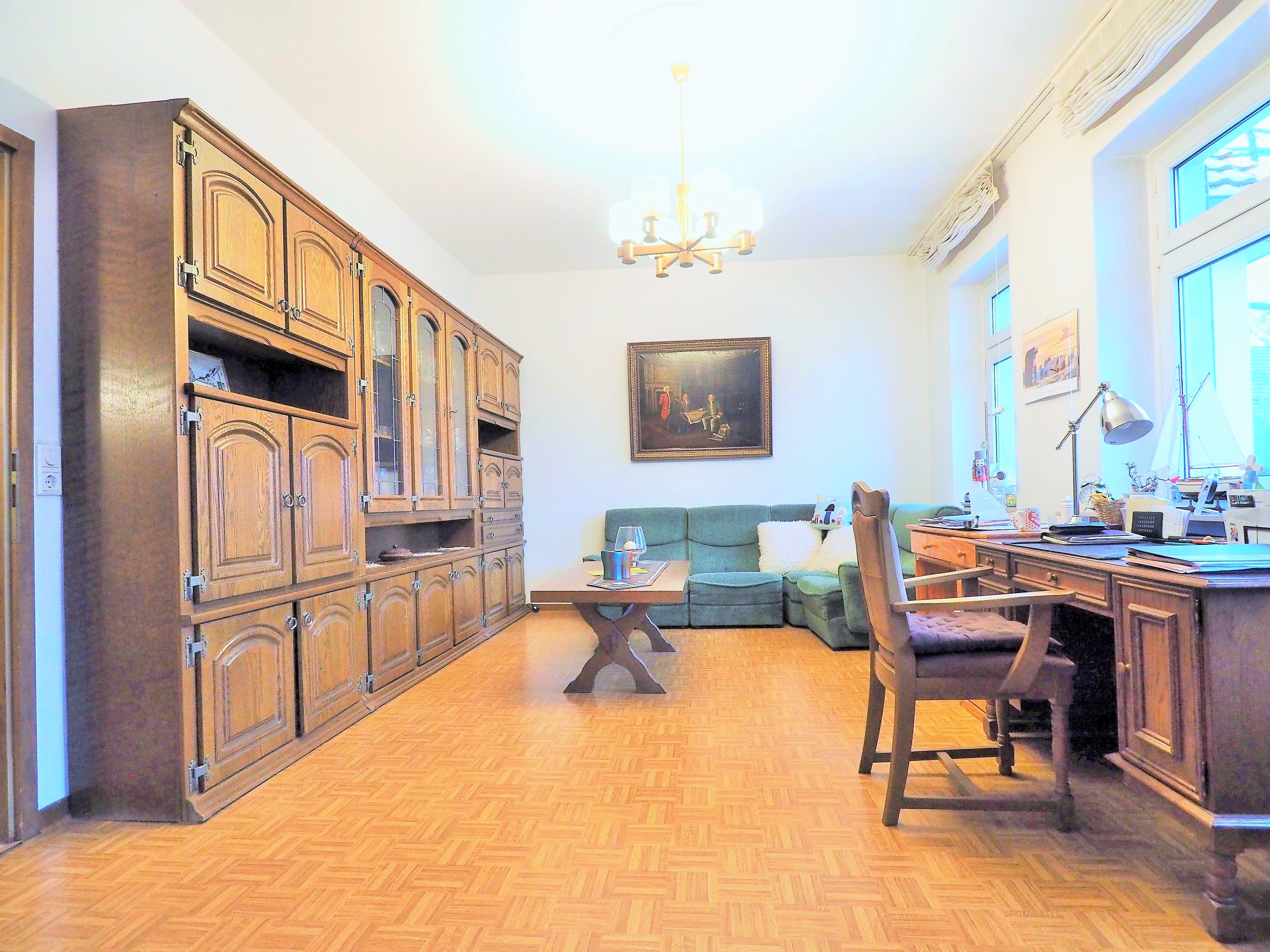 Groß präsentieren sich Wohn- und Esszimmer durch einen breiten Durchgang vereinigt und ebenso vom Flur über 2 Türen erreichbar. Im Rahmen der anstehenden Renovierung lassen sich beide Räume natürlich wieder trennen. Kinder- und Schlafzimmer vervollständigen das großzügige Raumangebot. Die Wohnung befindet sich in einem renovierungs- bzw. modernisierungsbedürftigen Zustand!