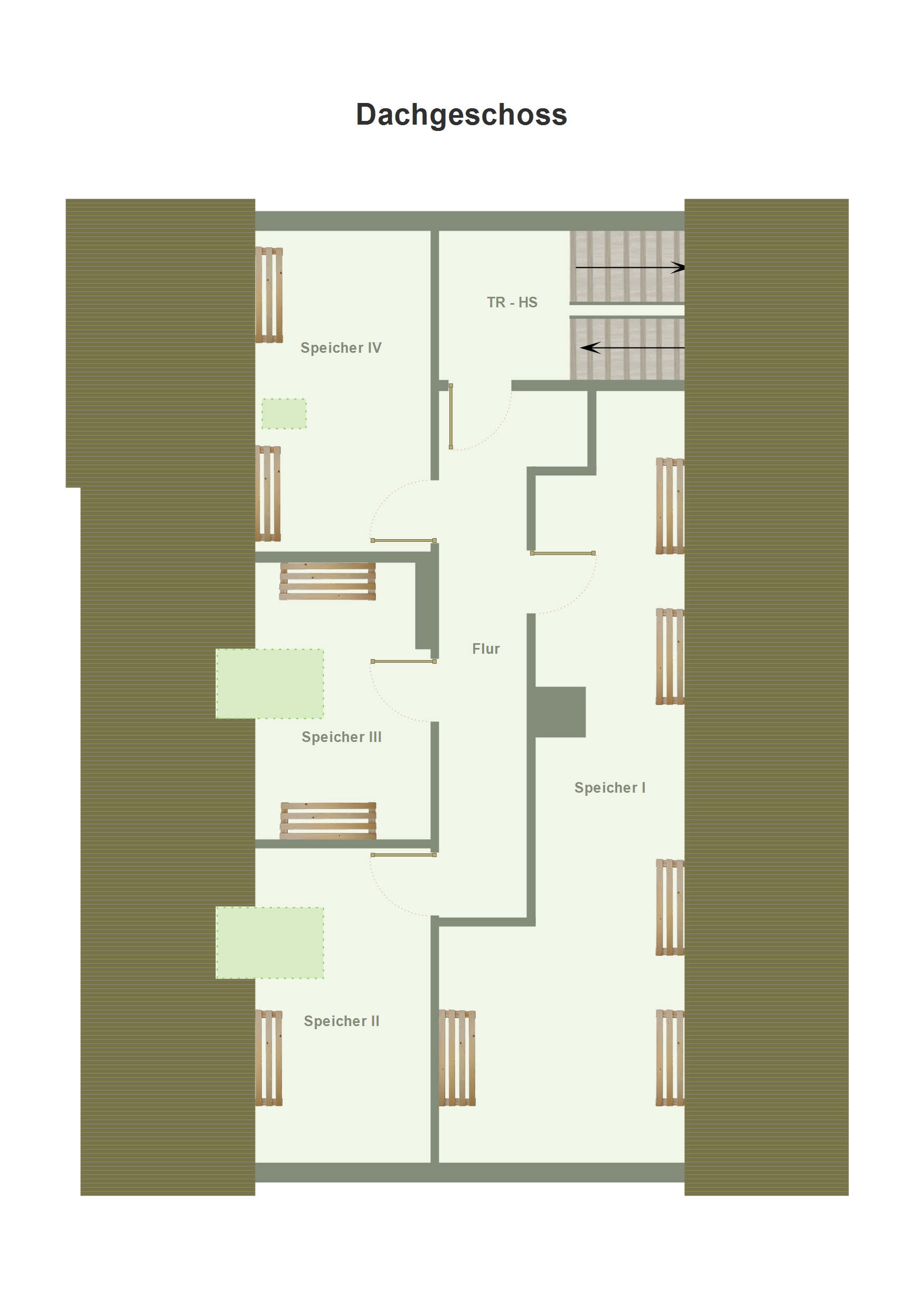 Das Dachgeschoss, erreichbar über das Treppenhaus, bietet eine Nutzfläche von 51,15 m² und eine wohnliche Aufteilung auf mehrere Zimmer mit zwei kleinen Gauben. Ein offizieller Ausbau mit Baugenehmigung und Umwandlung zu Wohnfläche wurde in den beiden Nachbargeschossen vorgenommen! Eine wohnliche Raumaufteilung als auch Anschlüsse für ein Badezimmer ebenso wie Heizkörper in verschiedenen Räumen sind gegeben – in den 80er/90er Jahren wurden Teile des Dachgeschosses bereits wohnlich genutzt.