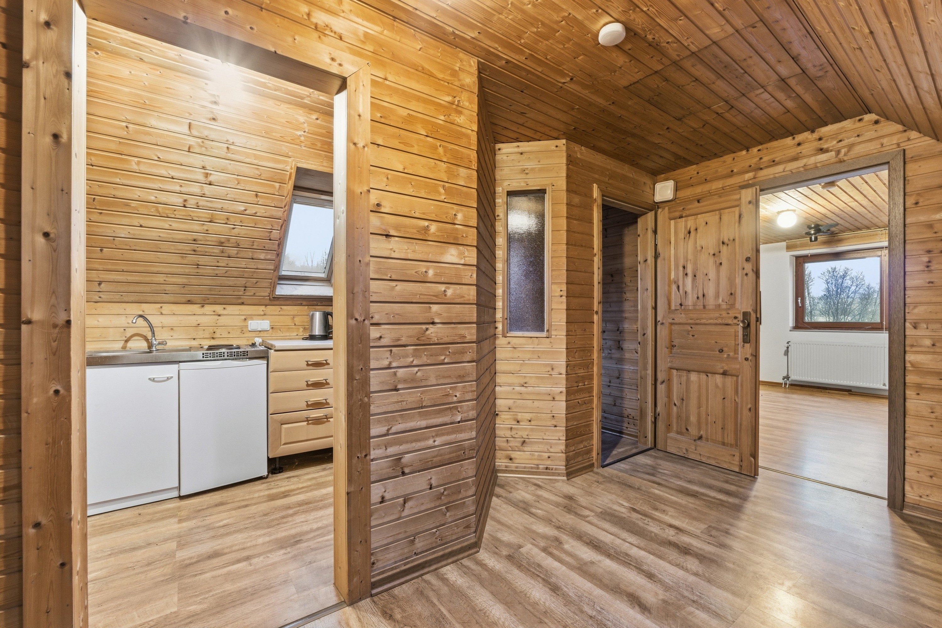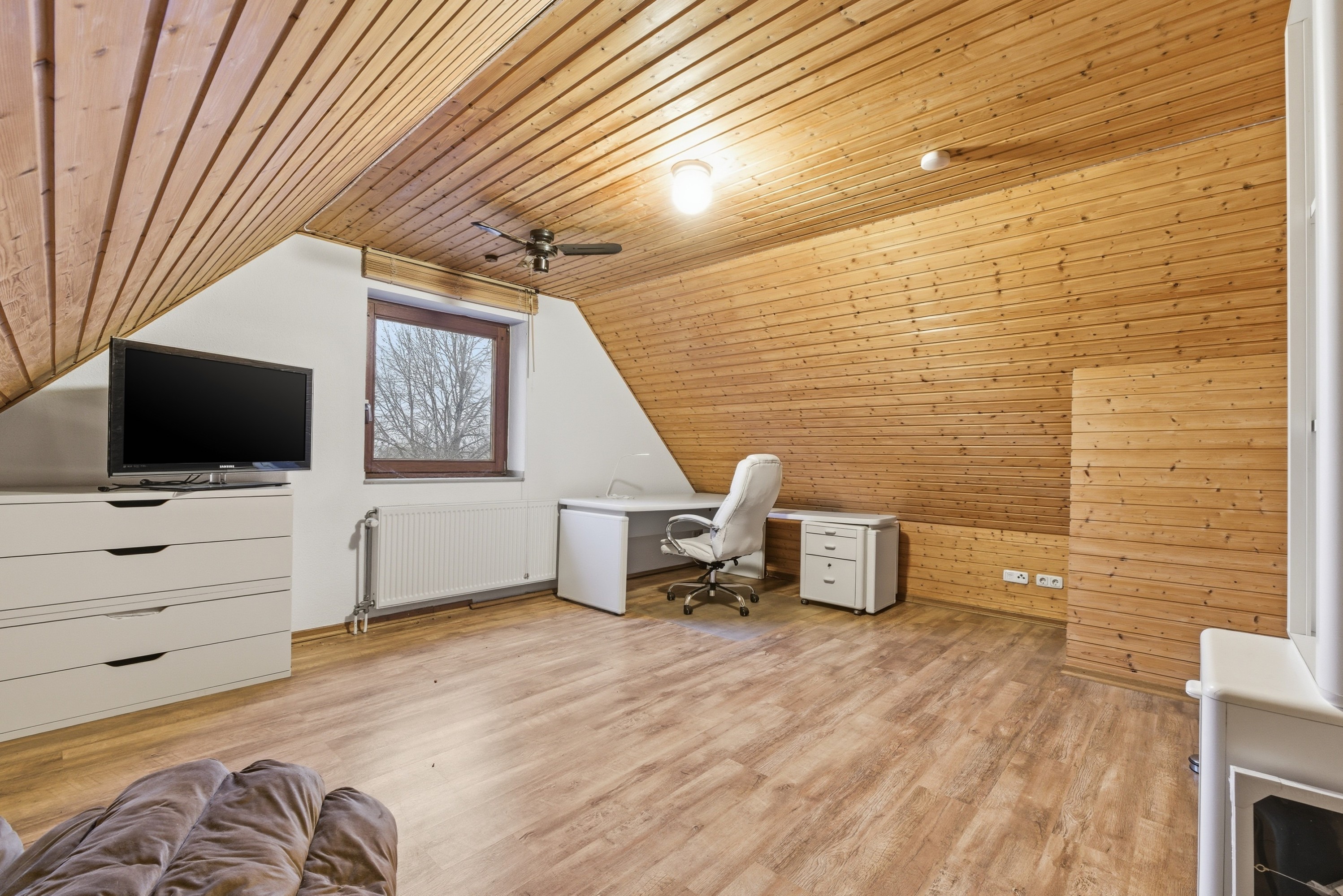 Aus dem Entrée des Hauses erreichen Sie über eine Massivholztreppe die im Dachgeschoss gelegene Wohnung mit einer Wohnfläche von ca. 129 m², welche in der Baubeschreibung als Einliegerwohnung deklariert ist. Für Personen mit Beeinträchtigung ist bereits ein Treppenlift installiert.