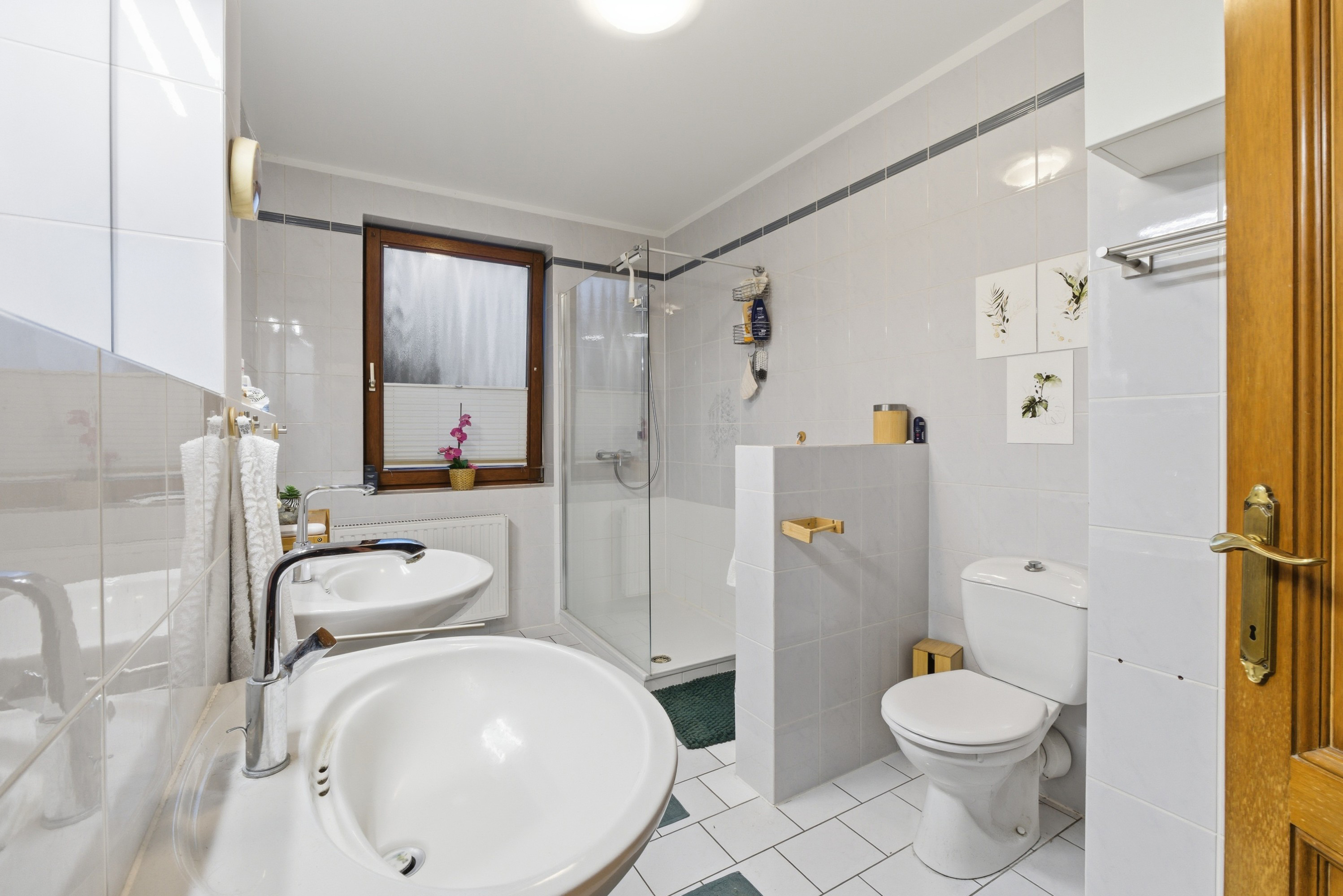 - Ausstattung des Bades Dusche, Badewanne, Fenster
