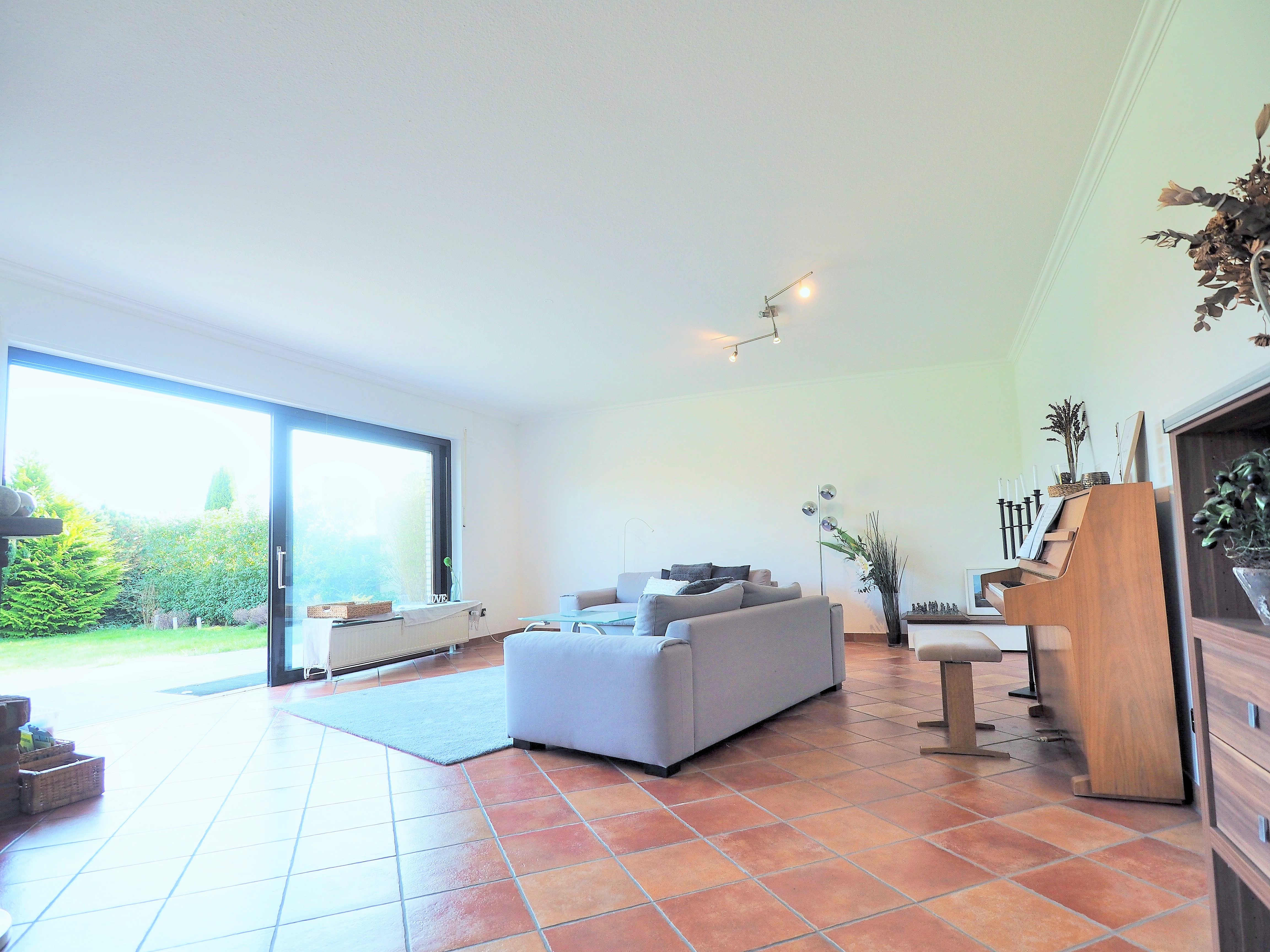 Insgesamt ist das Haus ganz auf die Bedürfnisse einer Familie zugeschnitten, die großzügiges Wohnen liebt. Die beiden optisch durch einen Außenkamin getrennten Terrassenteile und den Garten können Sie sowohl von der Küche als auch aus dem Wohnzimmer heraus betreten. Der Garten in Feldrandlage ist gepflegt und ansprechend gärtnerisch gestaltet, somit finden Sie auch hier reichlich Platz zum Spielen, Entspannen und Gärtnern.