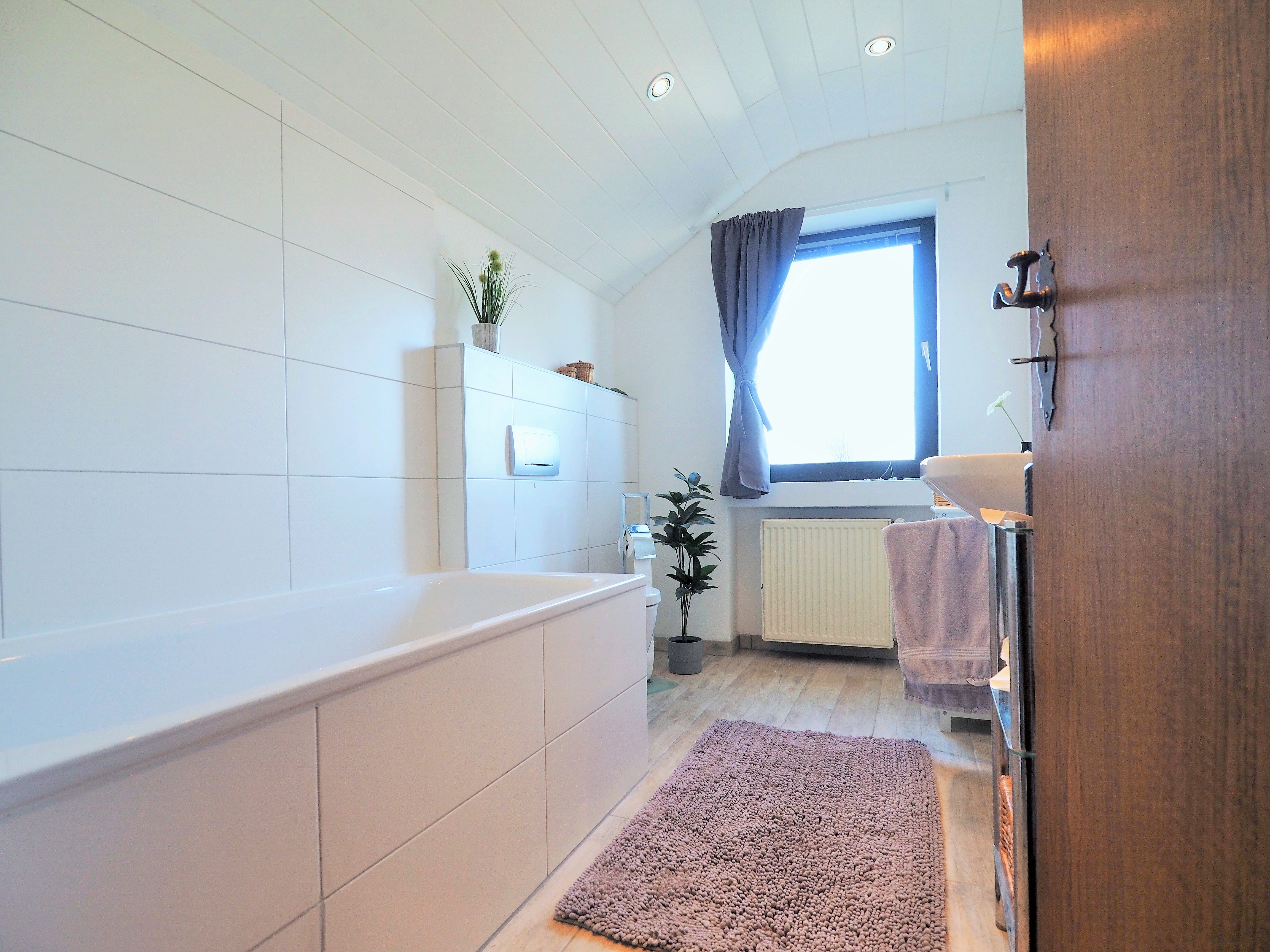 - Ausstattung des Bades Dusche, Badewanne, Fenster