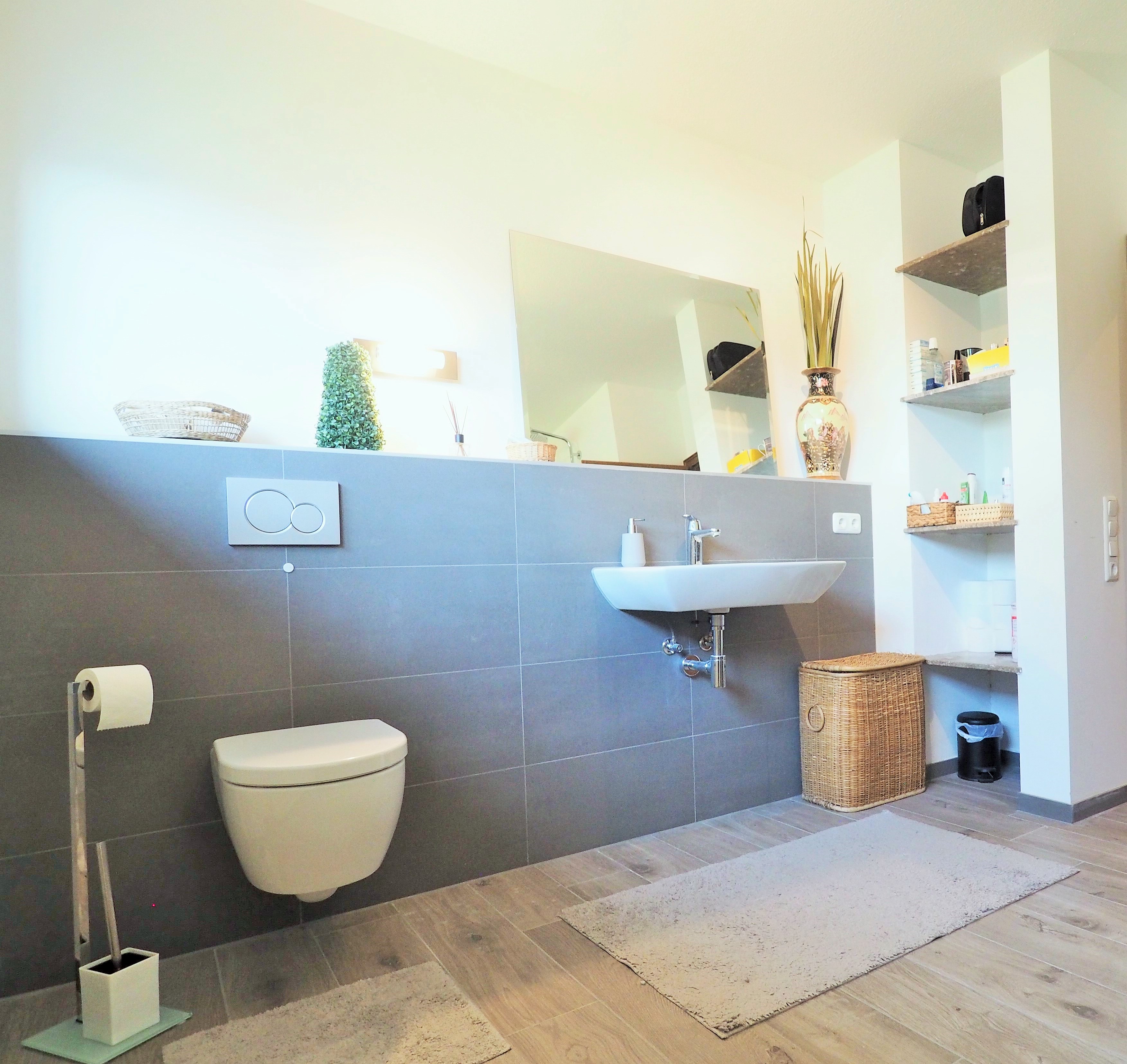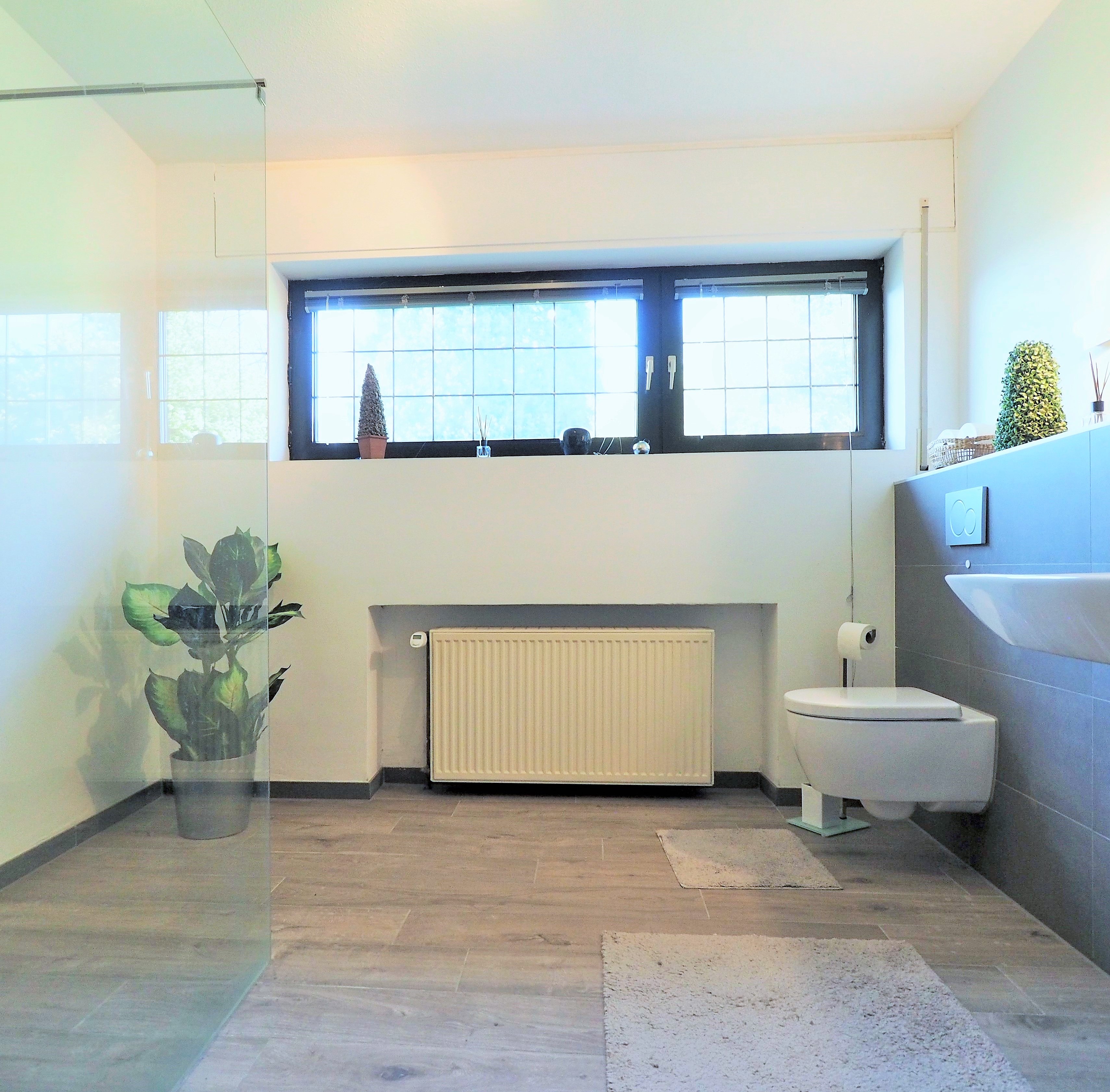 2023 – komplette Erneuerung des Tageslicht-Badezimmers im EG mit großer barrierefreier Dusche