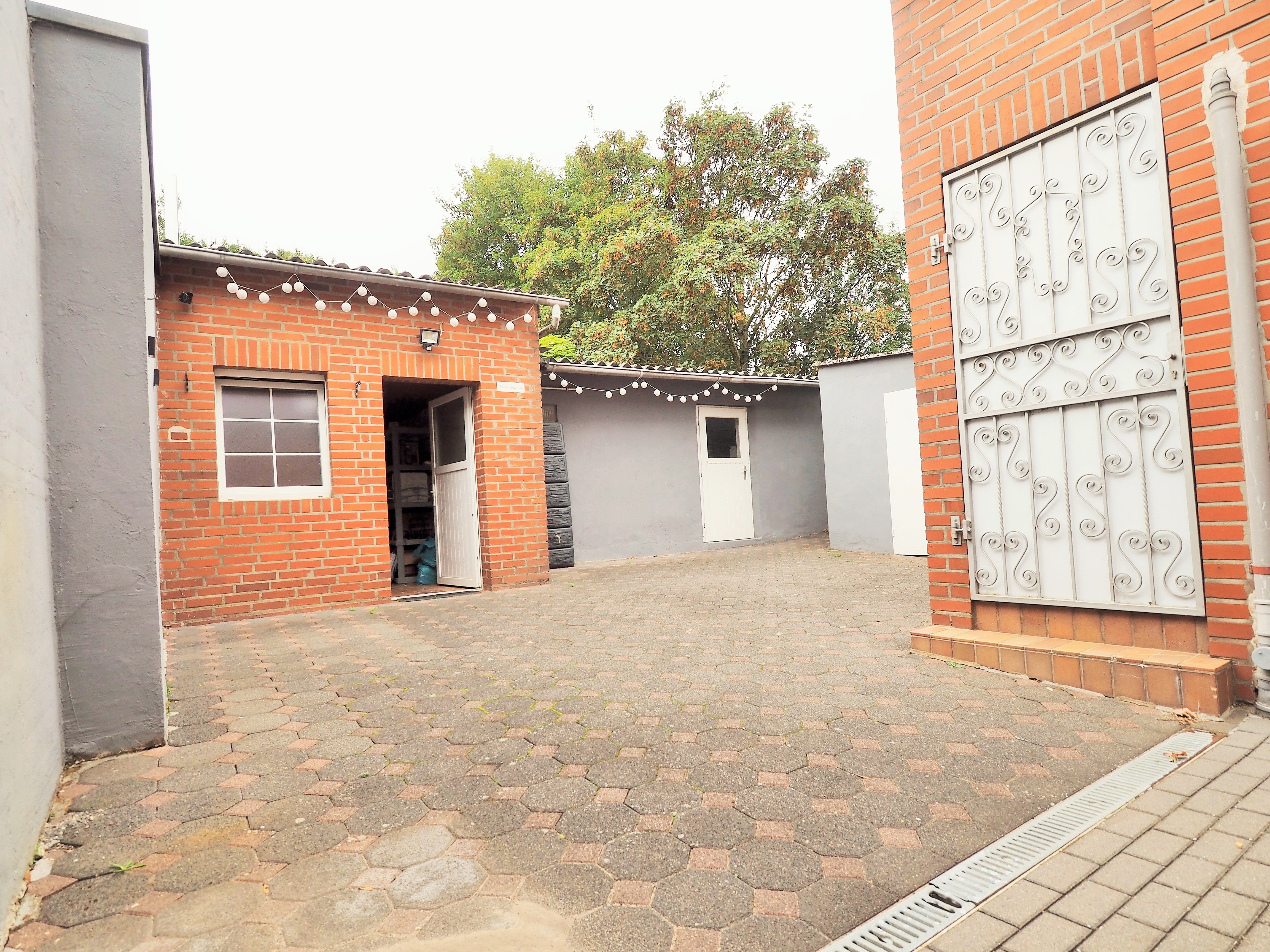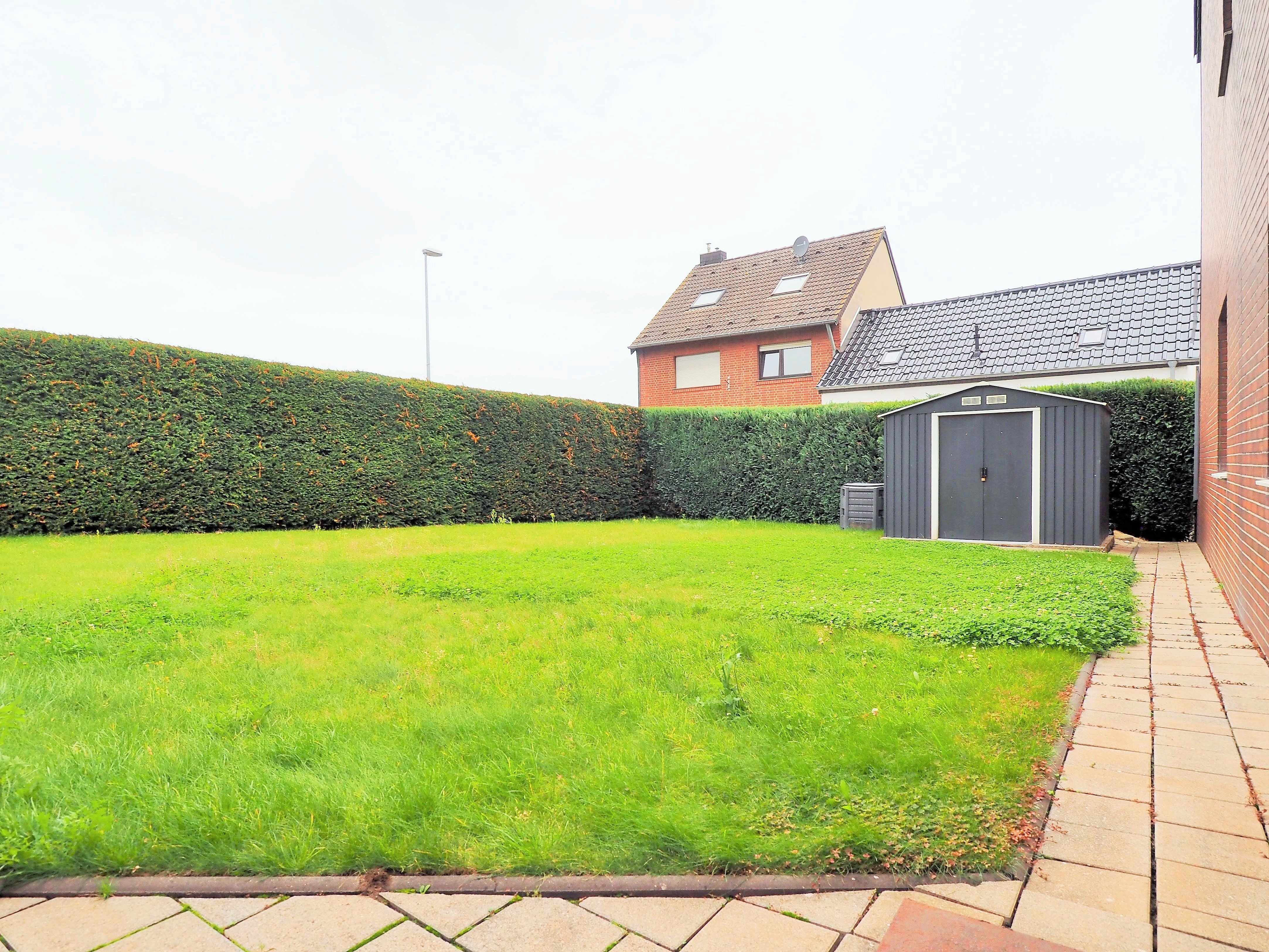 Der idyllische Innenhof, der keine fremden Blicke zulässt als auch der durch eine hohe Hecke sicher eingefriedete Garten stellen ein Refugium für die ganze Familie dar, in dem Eltern entspannen und Kinder sicher spielen. Im Garten selbst steht bereits ein kleines Gartenhaus und wartet darauf Rasenmäher und Co. zu beherbergen.