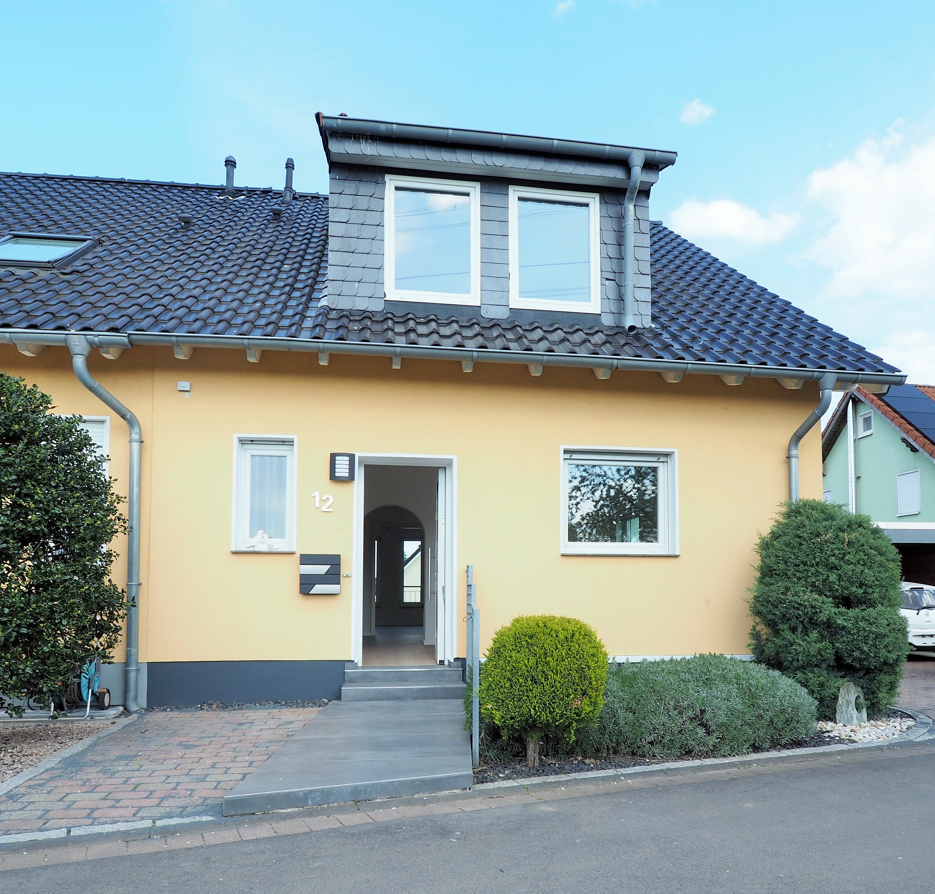 Das gepflegte und junge Reihenendhaus mit Garage bietet eine überzeugende Wohnfläche von ca. 200 m² und wurde gemeinsam mit der Garage um 2006 in Massivbauweise erstellt. Das geneigte Grundstück (Hanglage) ist terrassenförmig auf zwei Ebenen angelegt. Der vordere Bereich des Grundstücks befindet sich auf Straßenniveau mit Hauseingang ins Erdgeschoss. Der rückwärtige Grundstücksbereich liegt auf einem tiefer gelegenen Geländeniveau, sodass das Untergeschoss zum Gartenbereich hin und von diesem ebenerdig erreichbar ist. Das Haus wird über eine neue Gas-Brennheizung mit Warmwasserspeicher der Marke Vaillant als Fußbodenheizung erwärmt, die 2024/25 neu im Spitzboden installiert wurde.