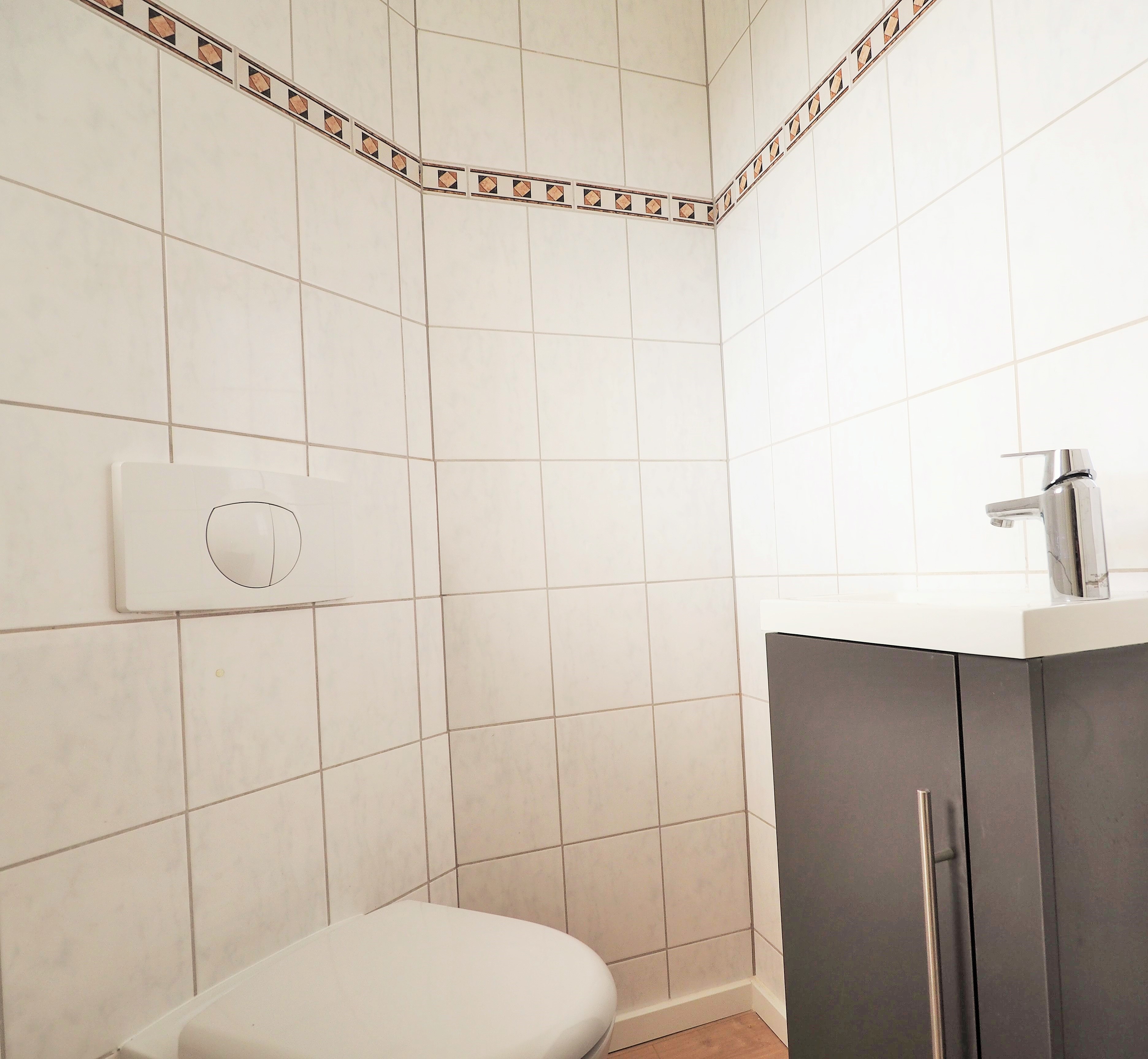 Ausgehend vom Eingangsbereich der Ihnen direkt den Blick ins Erdgeschoss des Hauses offenbart, finden Sie die mit mehr als 32 m² großzügige und offene Wohnküche sowie das zum Garten gelegene Wohnzimmer mit einer Wohnfläche von knapp 29 m², von welchem Sie über eine Wendeltreppe den Garten und die Terrasse erreichen. Große Fenster garantieren Ausblick und Lichtdurchflutung. Das im Eingangsbereich mit Gardeobennische gelegene moderne Gäste-WC als auch ein kleiner Vorratsraum vervollständigen die Wohnebene, deren Oberböden erst in diesem Jahr komplett in pflegeleichten Vinyl-Designboden gestaltet wurden.