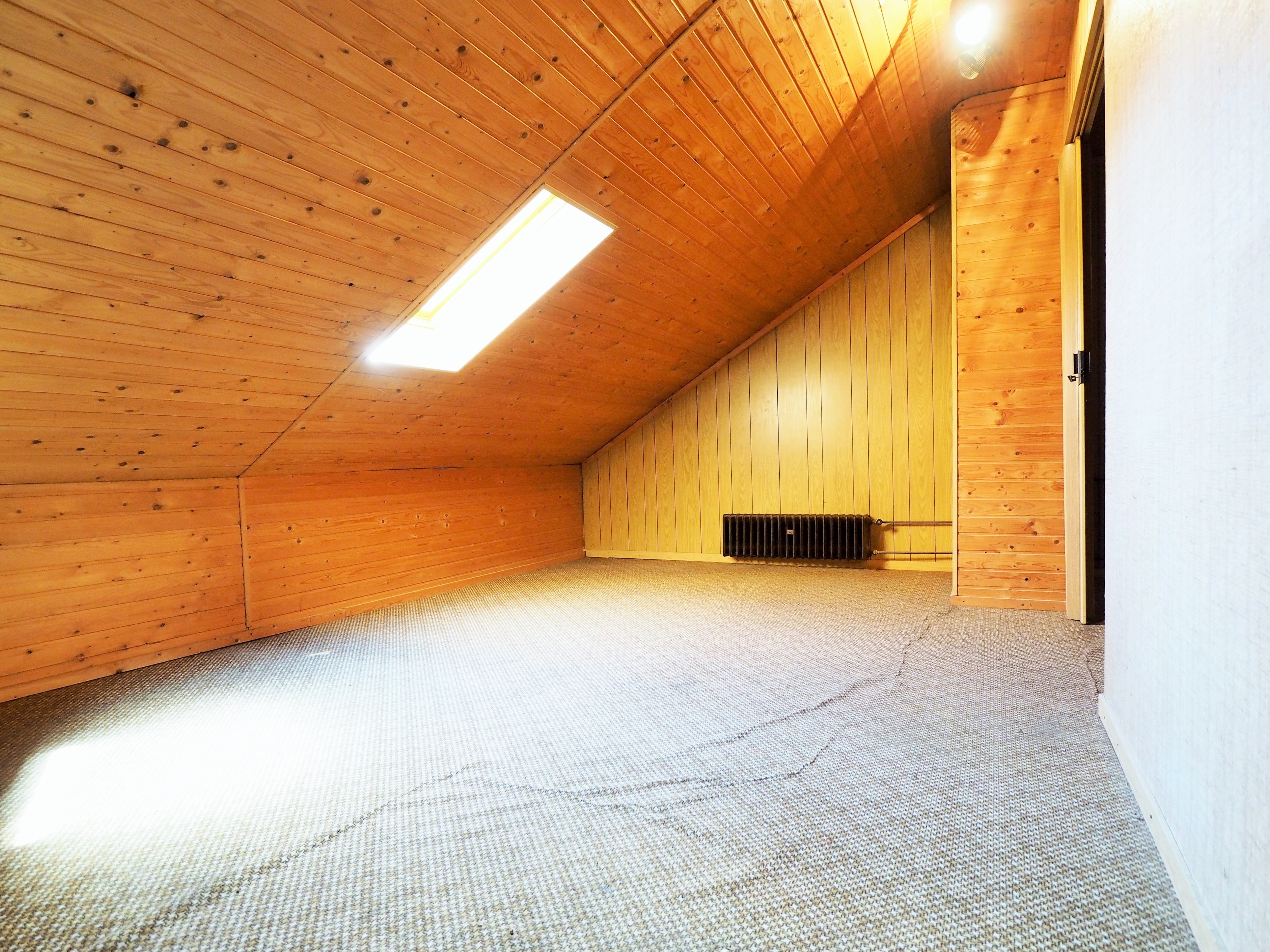 – Dachunteransichten, Decke, Wände mit Paneelen / Nut- und Feder bekleidet