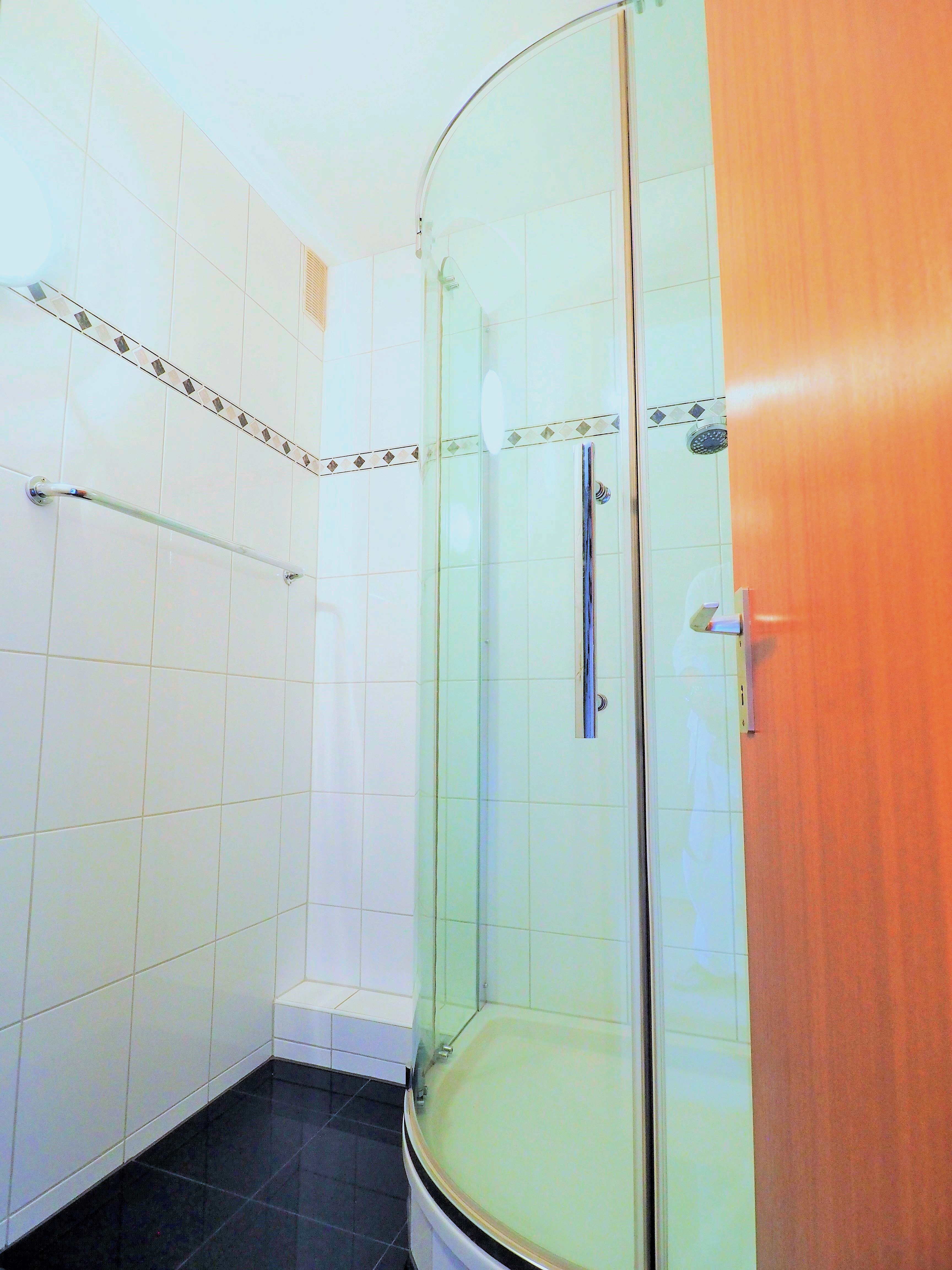 – Duschbad mit Natursteinboden und Wandfliesen, Dusche = ca. 2016 komplett saniert