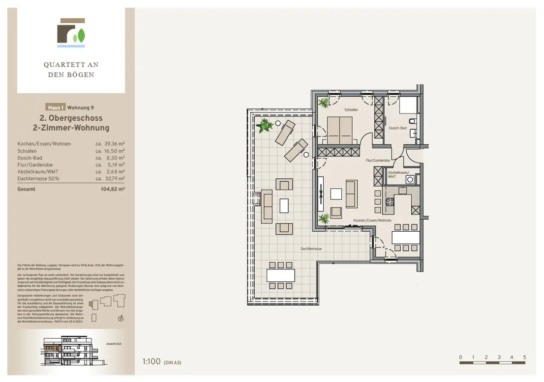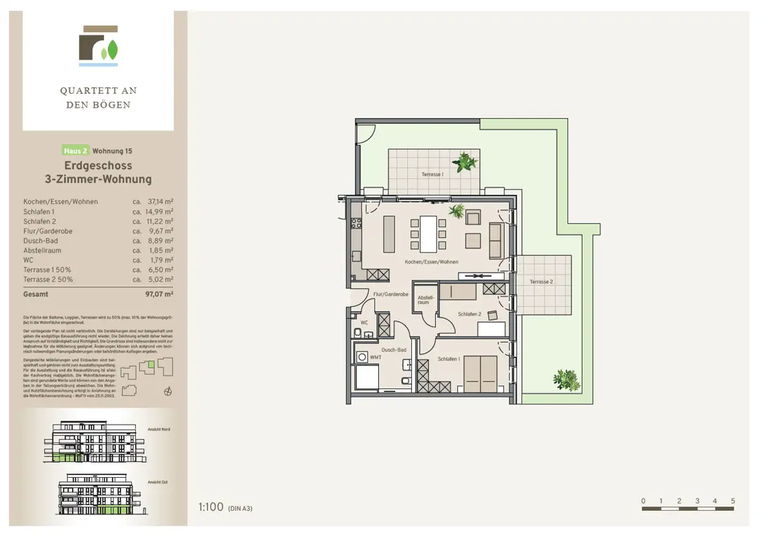 o Große Balkone und Dachterrassen; Erdgeschosswohnungen mit Terrasse und eigenem Garten