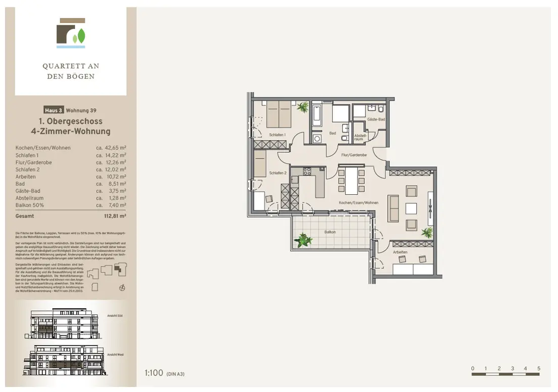 Wohlfühlen lässt sich planen. Von der anspruchsvollen Architektur bis zum Arrangement der Wohneinheiten: Alles im „Quartett an den Bögen" ist wohlüberlegt und geplant. Das Ziel ist klar: Ihr Wohnkomfort steht an erster Stelle. Lassen Sie sich von den Wohnungsgrundrissen und der erstklassigen Ausstattung inspirieren.